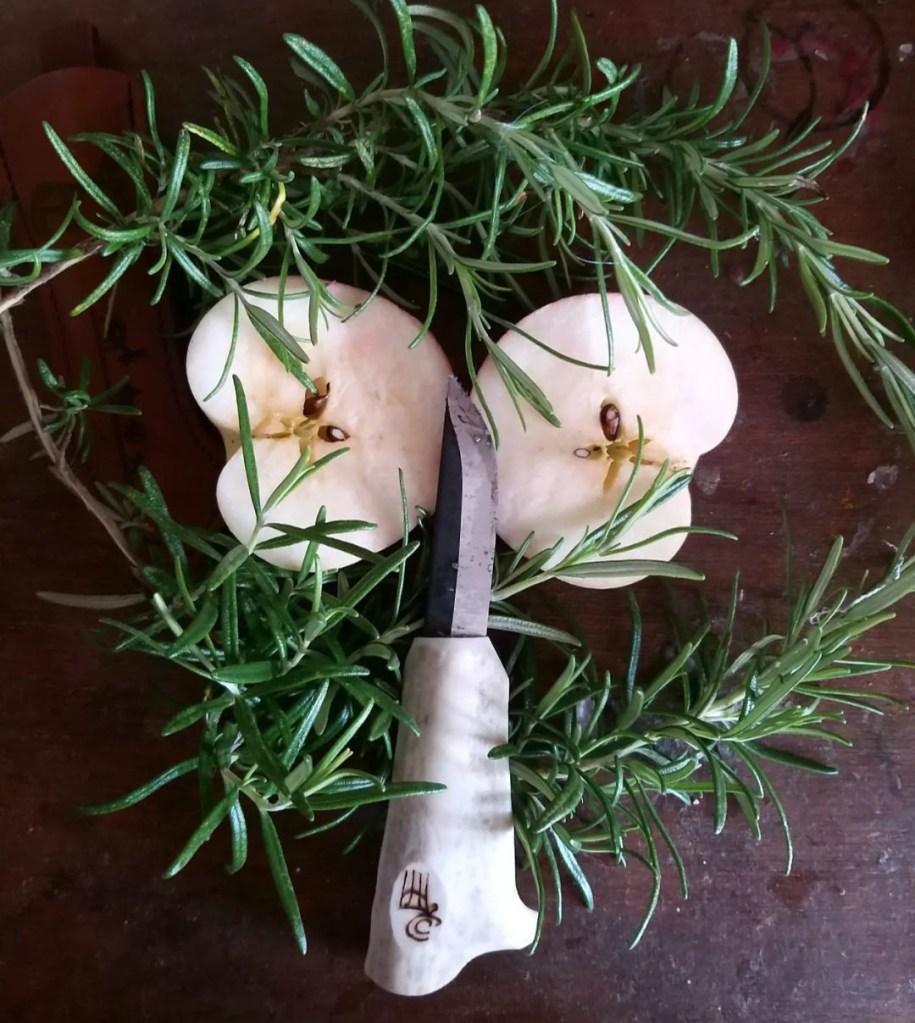 My bone handled knife is primarily used to mark symbols on to candles, strip bark or harvest herbs and plants when I am foraging.