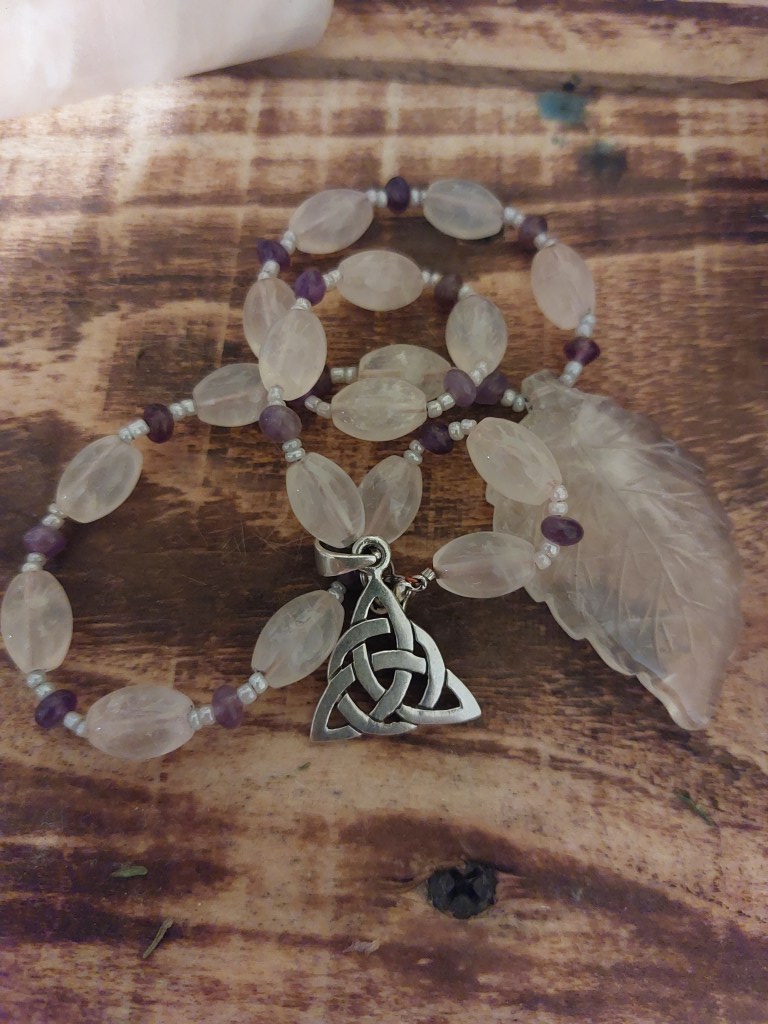 When I got home, I attached a triquetra pendant to the other end of the necklace so that it could mark a second anchor point (so I could start a new prayer or affirmation, if needed).