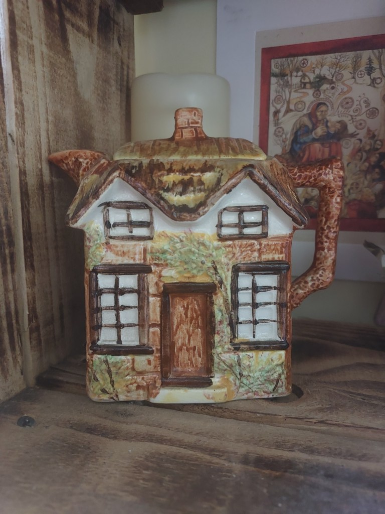 Unfortunately, as my Nan died suddenly of Coronavirus in early 2021, and I was unable to retrieve many of her belongings due to Covid travel restrictions, I was unable to save her cottage teapot. And my mother’s own pot supposedly broke a few months before she passed away on Summer Solstice 2012. This has led to me purchasing my own cute little vintage teapot – you can find dozens and dozens on eBay and Etsy for an absolute steal!