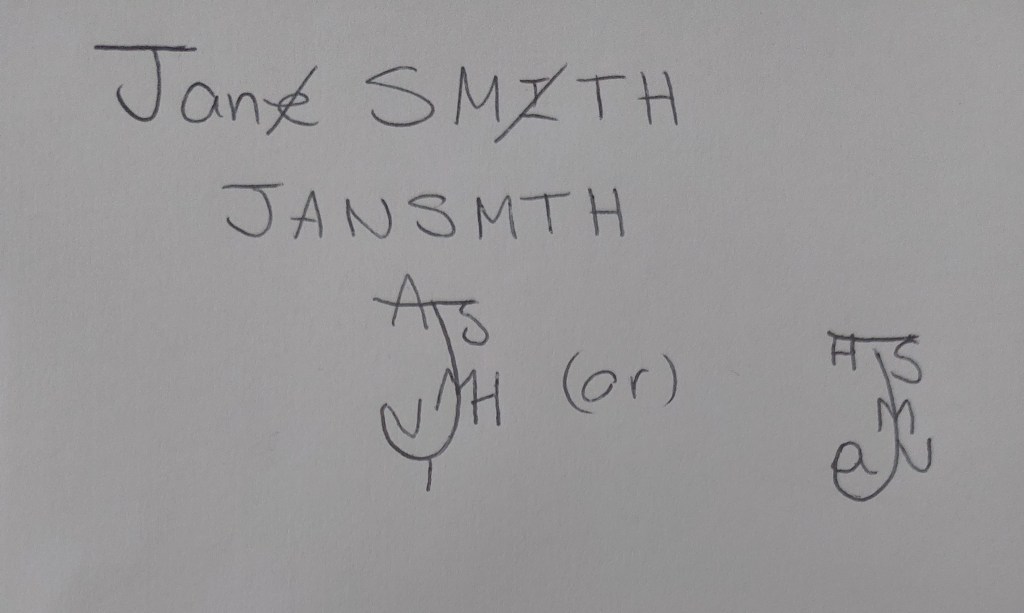 For example; Jane Smith would end up being ‘J A N S M T H’